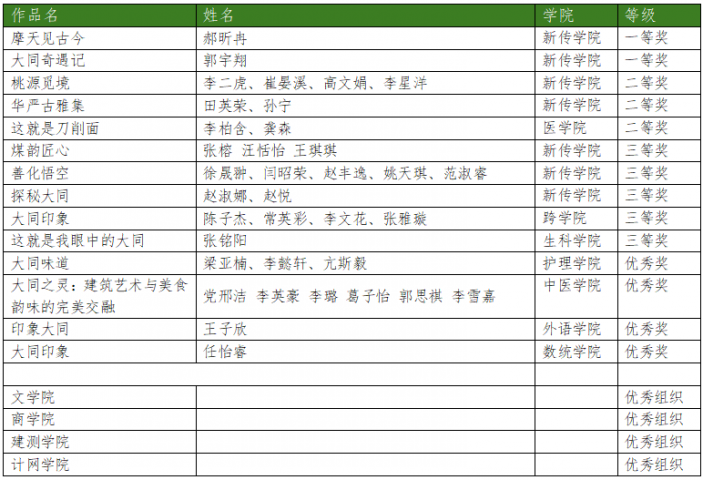 “这就是大同”短视频大赛获奖入围作品名单